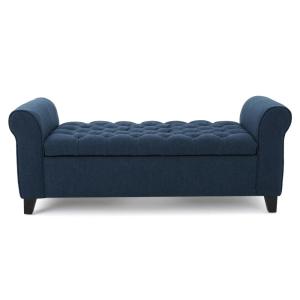 A storage bench at the end of the bed is an ideal place to keep extra pillows and blankets.