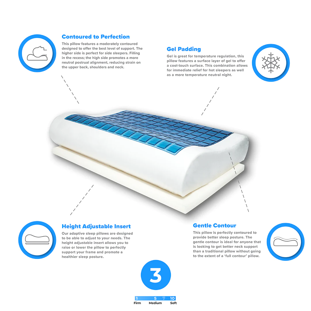 Sleep Comfort, Memory Foam Pillow, Contour Gel Pad Memory Foam 60 X 40